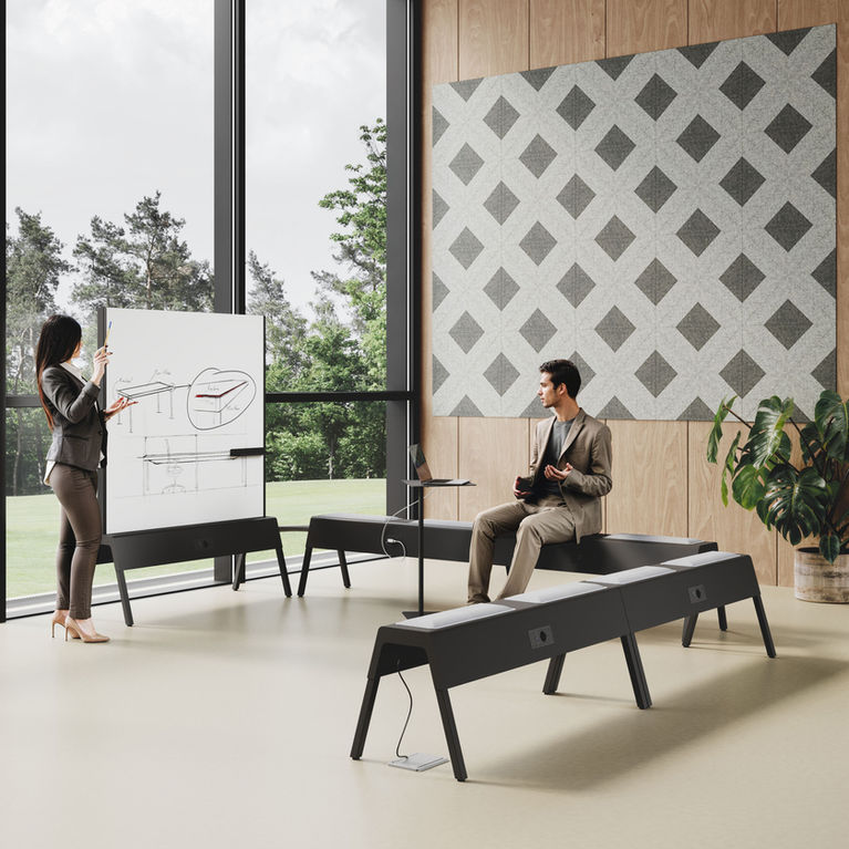 Con una sola presa è in grado di distribuire corrente in open space, call center, sale riunioni o lounge. La sua versatilità consente l’integrazione di librerie, schermi TV, piani d’appoggio e pannelli acustici Zen Square, migliorando anche il comfort sonoro.